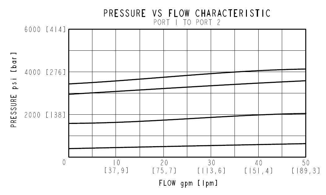 The RV12-26XX blocks flow from port 1 to port 2 until sufficient pressure is present at port 1 to force the pilot relief off its seat, allowing the main stage to shift, opening port 1 to port 2.