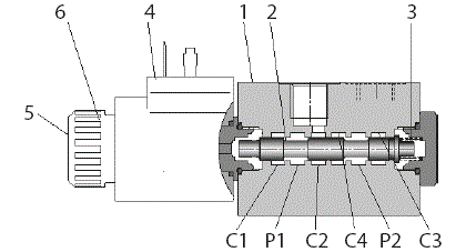 - Control spool operated by solenoid, with easily removable coil fastened by a ring nut.